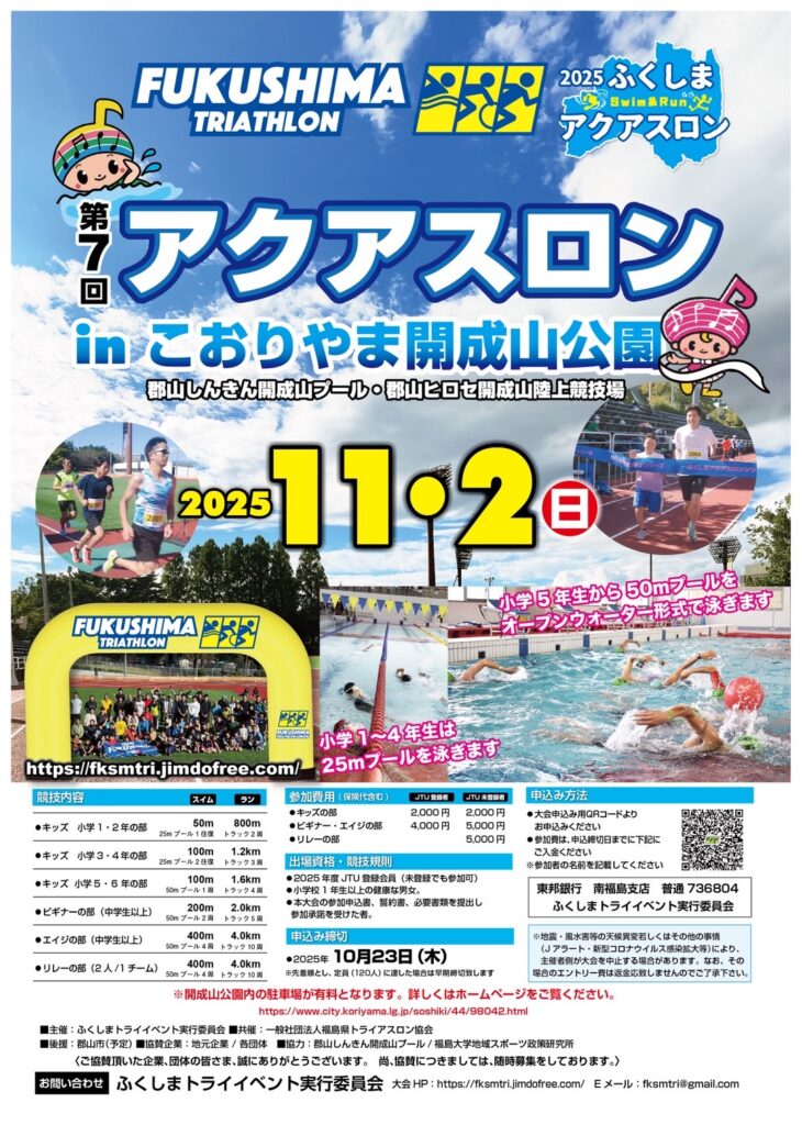 【イベント情報】第7回 アクアスロン in こおりやま開成山公園 開催!