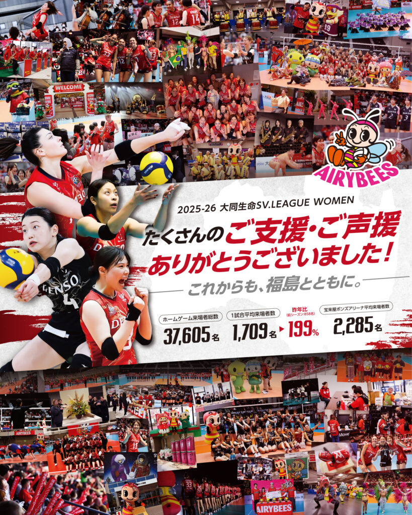 今後ともデンソーエアリービーズへの温かいご声援をよろしくお願いいたします。