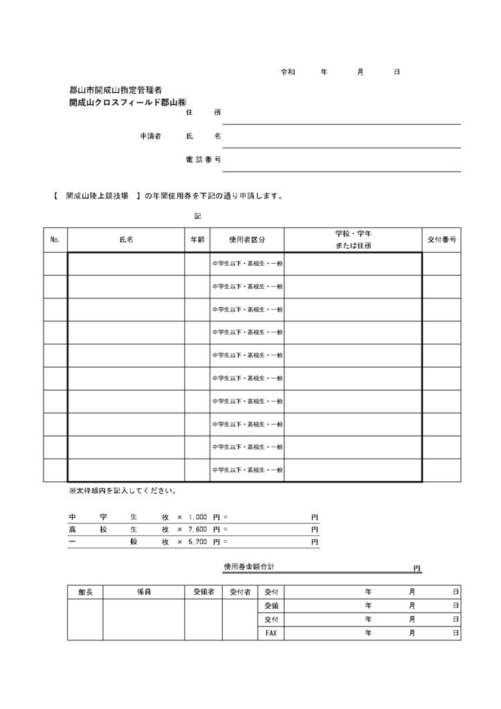 ※申請後、年間使用券の準備が整い次第、ご連絡いたします。(使用券の作成に2週間ほどお時間いただく場合がございます。)