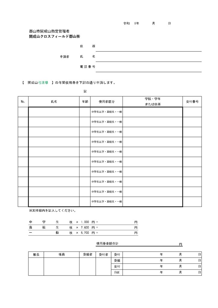 令和8年度の弓道場・陸上競技場年間使用券につきまして、下記のとおり申請受付を開始いたします。