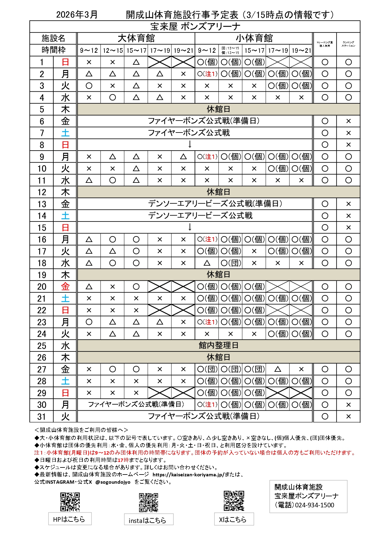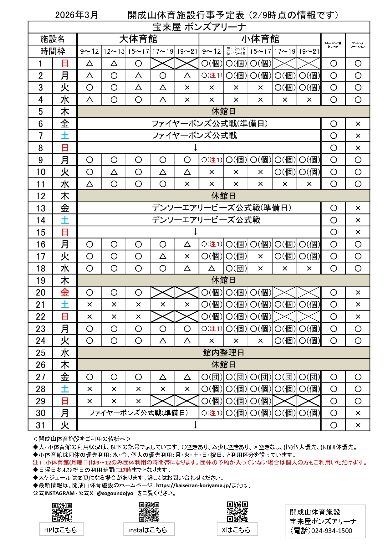 ※休館日、館内整理日、大会など施設貸切の際は貸出できないことがございます。
