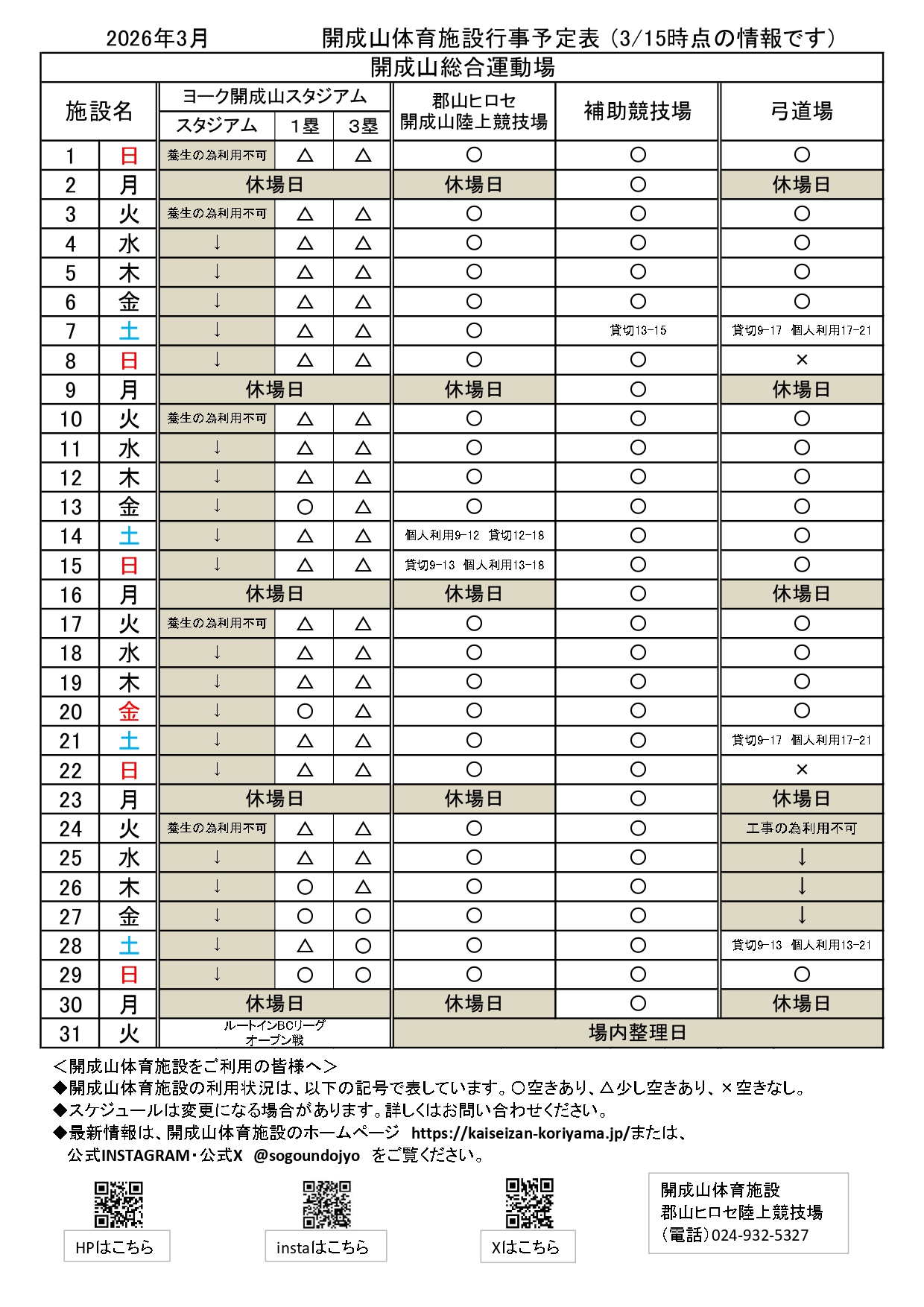 (2)ウレタンの舗装養生の為、平日のスパイク使用を制限します。(詳しくは場内掲示をご覧ください)